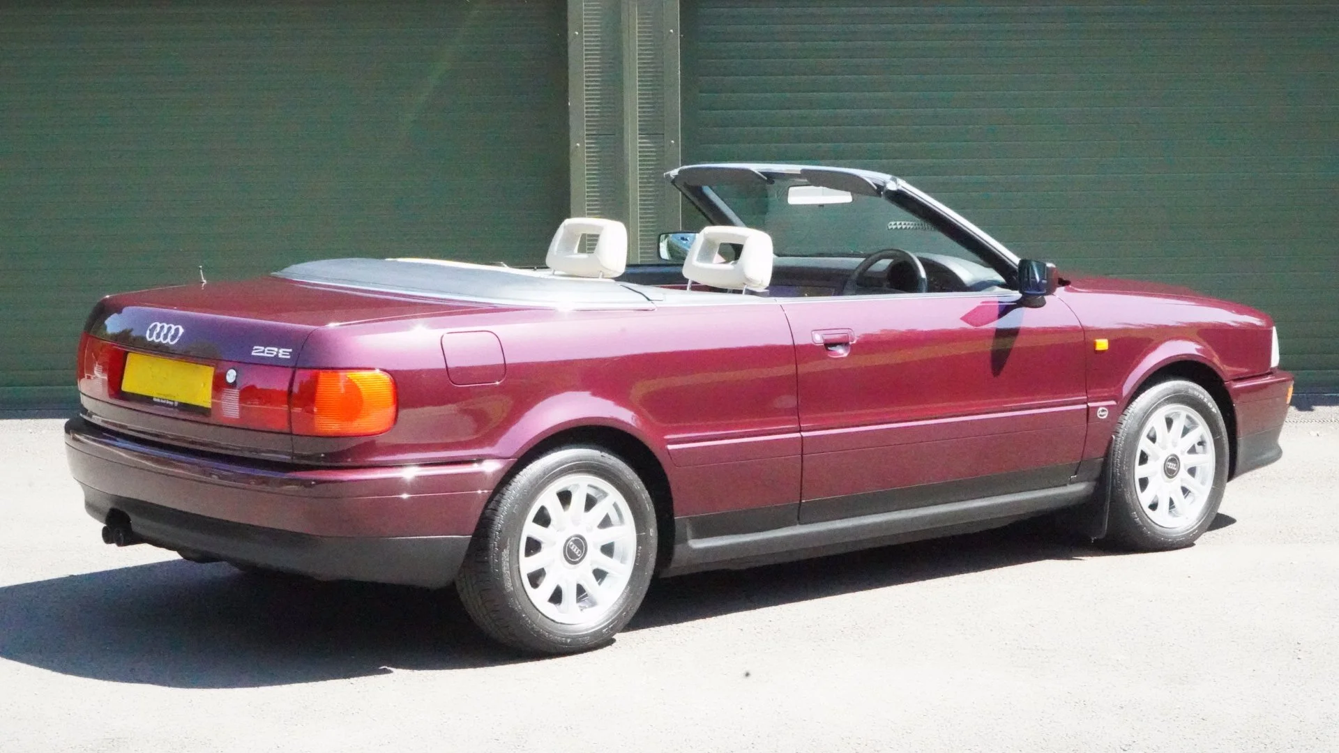 This pristine 1995 Audi Cabriolet 2.6E, features a stunning Ruby Red Pearl Effect finish, a fully zinc galvanized body, sports suspension, and a multilayer fabric hood. The interior boasts Ecru Kodiak Leather upholstery, walnut trim, air conditioning, and a modern stereo system. Equipped with a powerful 2.6E V6 engine and a four-speed automatic transmission, it offers smooth performance. Original Dunlop SP Sport D8 tyres, a spotless boot with untouched spare wheel and tool kit, and advanced safety features such as the Anti-Lock System ensure reliability. All handbooks, service records, original keys, and a sales brochure are included.